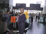 集合場所の京都駅烏丸口で旗を持って出迎え